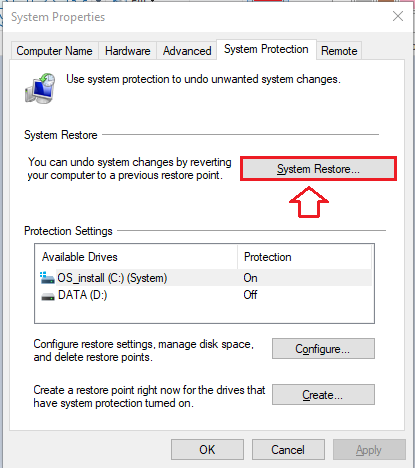 - Na aba Proteção do Sistema, clique em Restauração do Sistema.