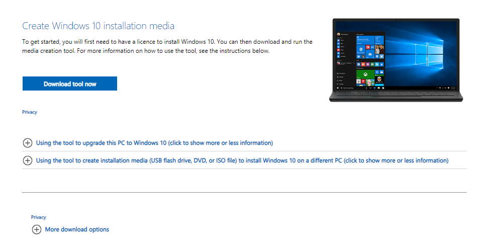 Media Creation Tool устанавливает актуальную версию Windows и обходной путь для ошибок, которые возникают в стандартном обновлении через Центр обновления.