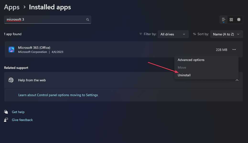 - Найдите Microsoft Office, откройте опции и нажмите Uninstall. Подтвердите удаление.