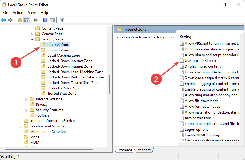 - Проверьте, есть ли групповая политика, управляющая Use Pop-up Blocker.