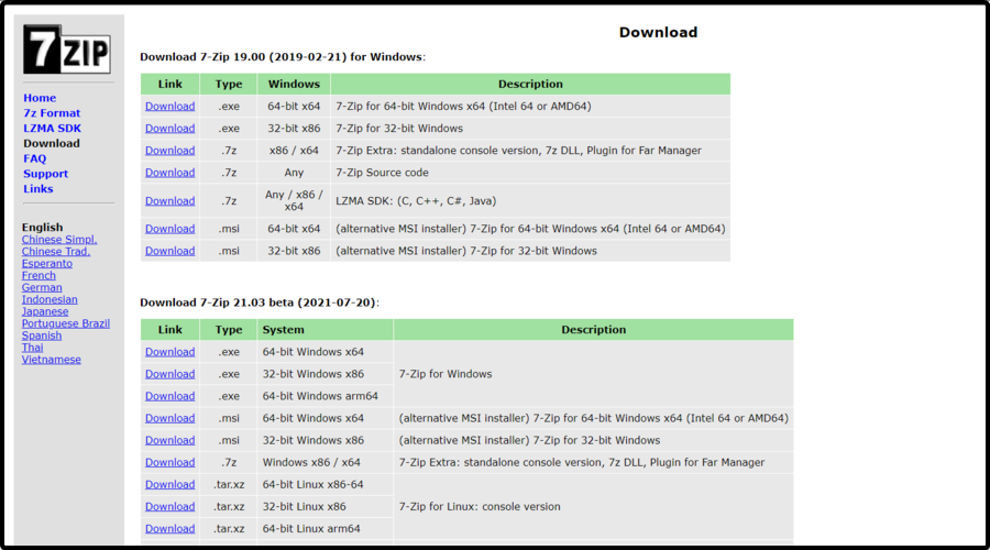 - Перейдите на официальный сайт загрузки 7-Zip.