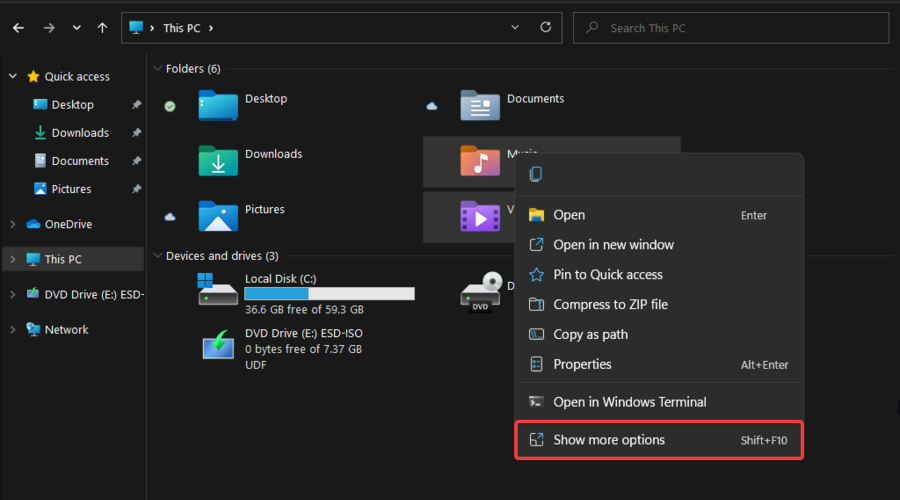 - Выберите один или несколько файлов/папок, щёлкните правой кнопкой и выберите «Show more options».
