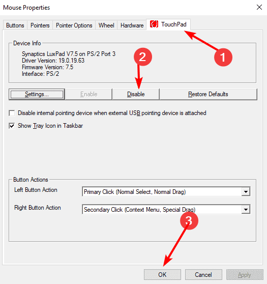 Почему тачпад может не отключаться