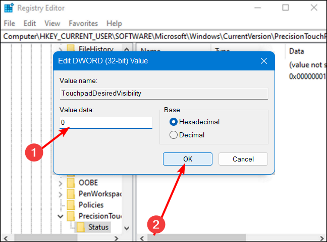 Computer\\HKEY_CURRENT_USER\\SOFTWARE\\Microsoft\\Windows\\CurrentVersion\\TouchPad\\Status