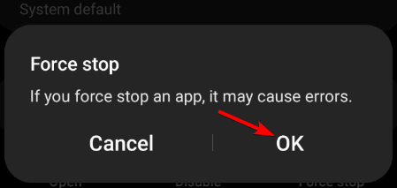Экран настроек приложения с кнопкой «Принудительно остановить»