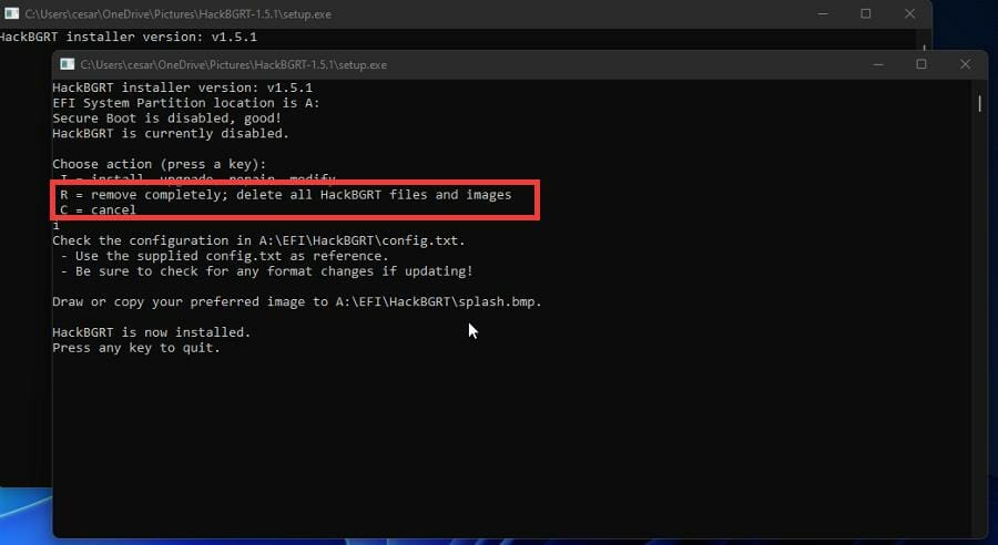 - Запустите setup.exe из папки HackBGRT ещё раз.