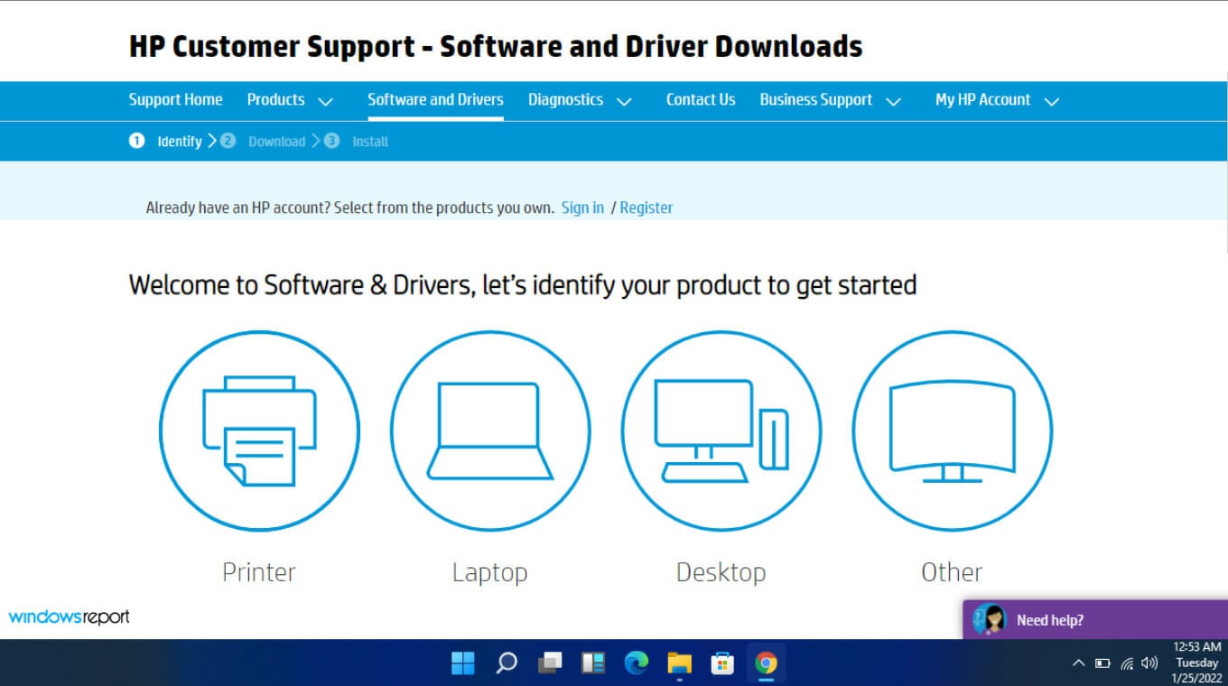 - Перейдите на сайт загрузки драйверов и ПО HP.