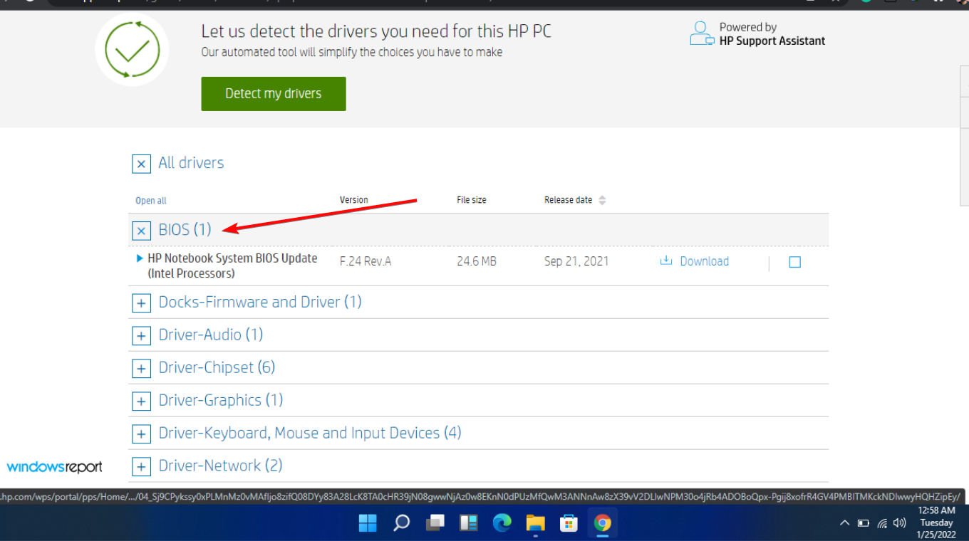 - В списке драйверов откройте раздел BIOS и найдите обновления.