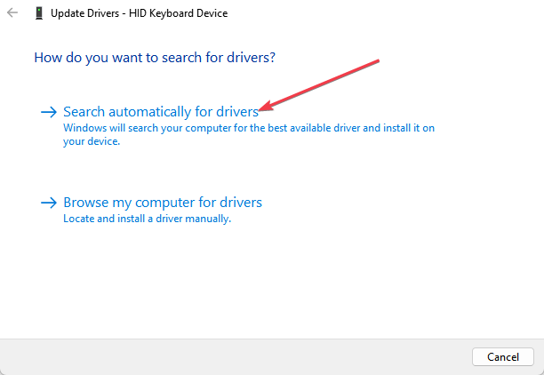 - Выберите «Автоматический поиск обновлённого программного обеспечения драйверов».