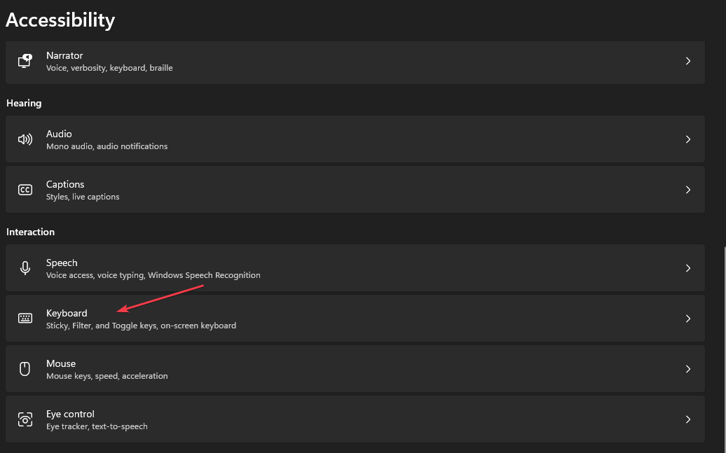 - Перейдите в «Специальные возможности» → «Клавиатура».