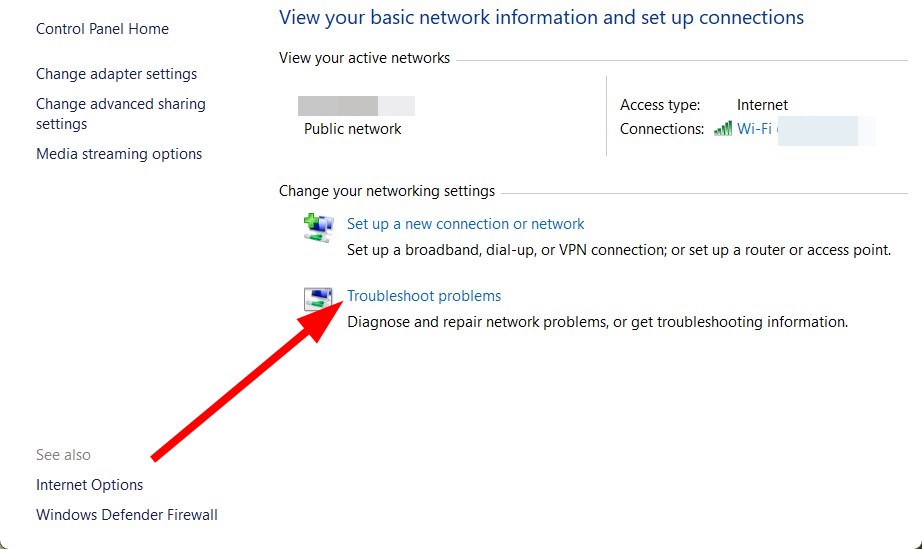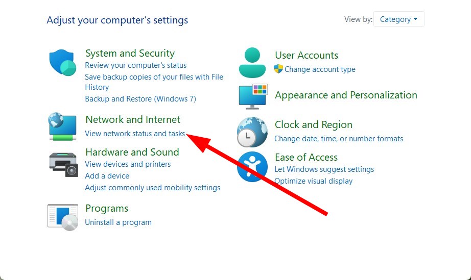 - Откройте «Панель управления» → Сеть и Интернет → Просмотр состояния сети и задач.