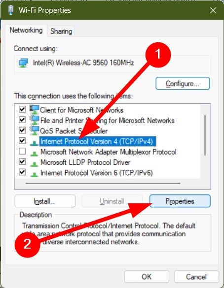 - Выберите «Internet Protocol Version 4 (TCP/IPv4)» и нажмите «Свойства».