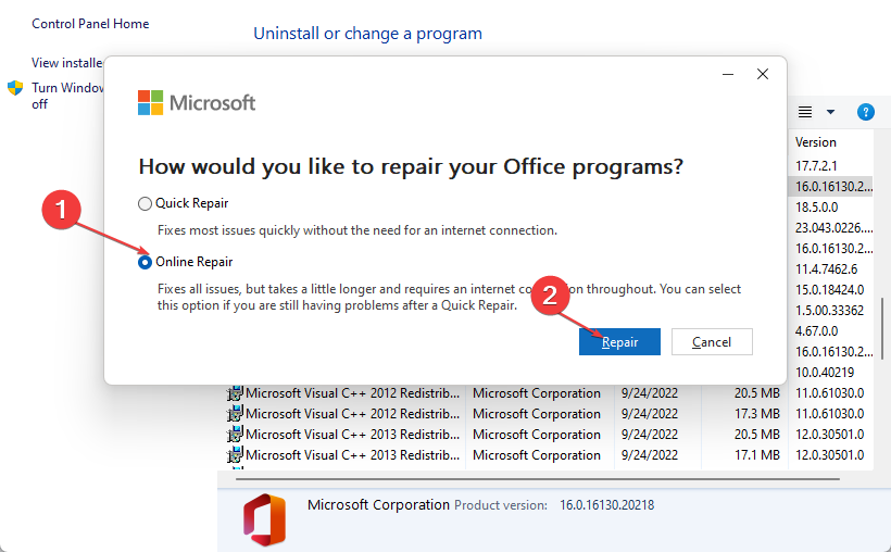 Когда использовать: восстановление полезно при подозрении на повреждение файлов Excel или компонентов Power Query. Если онлайн‑восстановление не помогает, рассмотрите полную переустановку Office.
