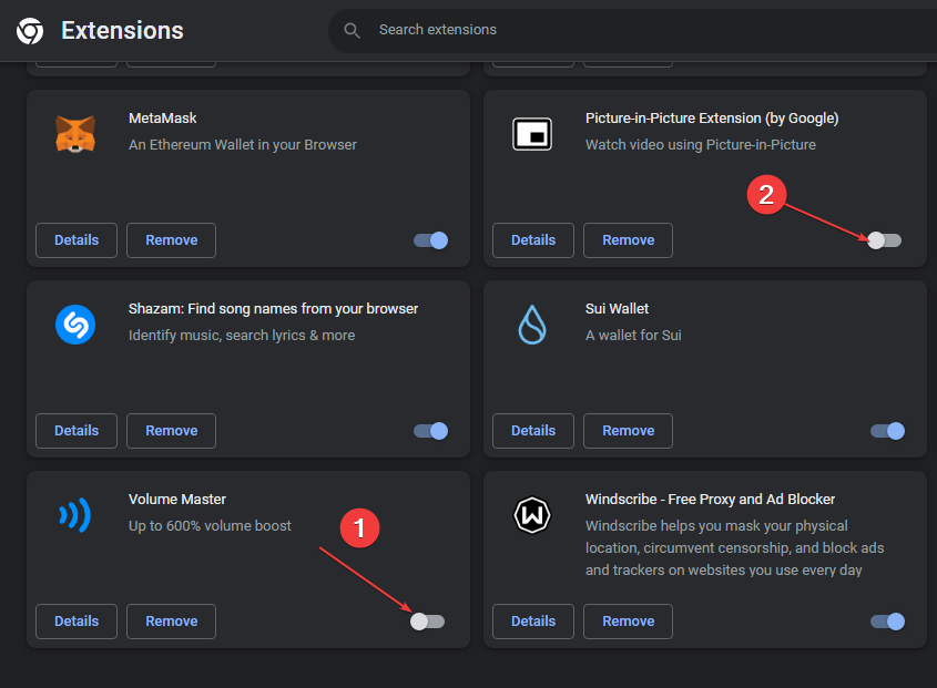 - Отключайте расширения по очереди, чтобы найти виновника.