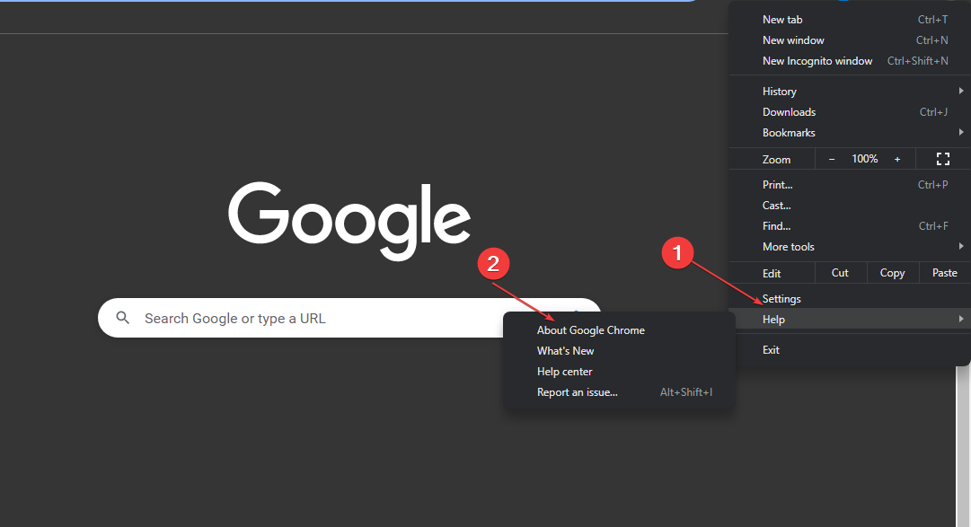 - Перейдите в меню: нажмите на три вертикальные точки, наведите на «Справка» и выберите «О Google Chrome».