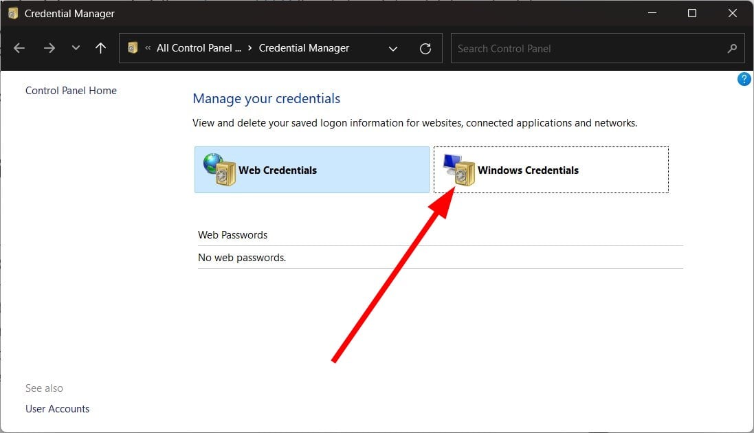 - Проверить и обновить записи в Диспетчере учётных данных.