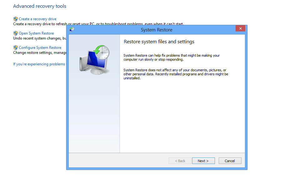 ALТ: Окно запуска восстановления системы (rstrui)
