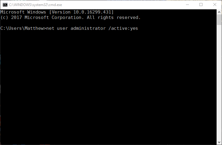 net user administrator /active:yes