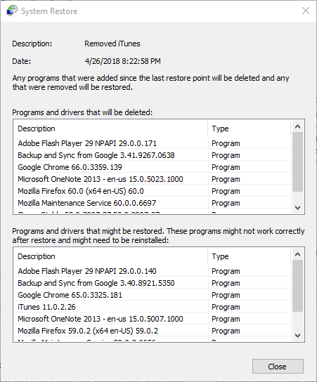 Мера: проверьте список затронутых программ перед подтверждением восстановления.