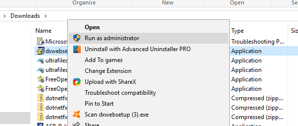ALТ: Контекстное меню установочного файла с выделенной опцией «Запуск от имени администратора»