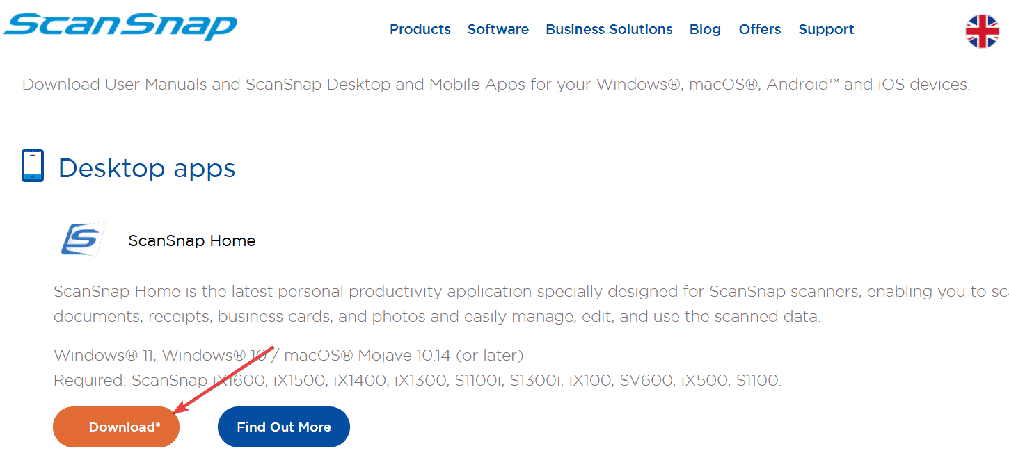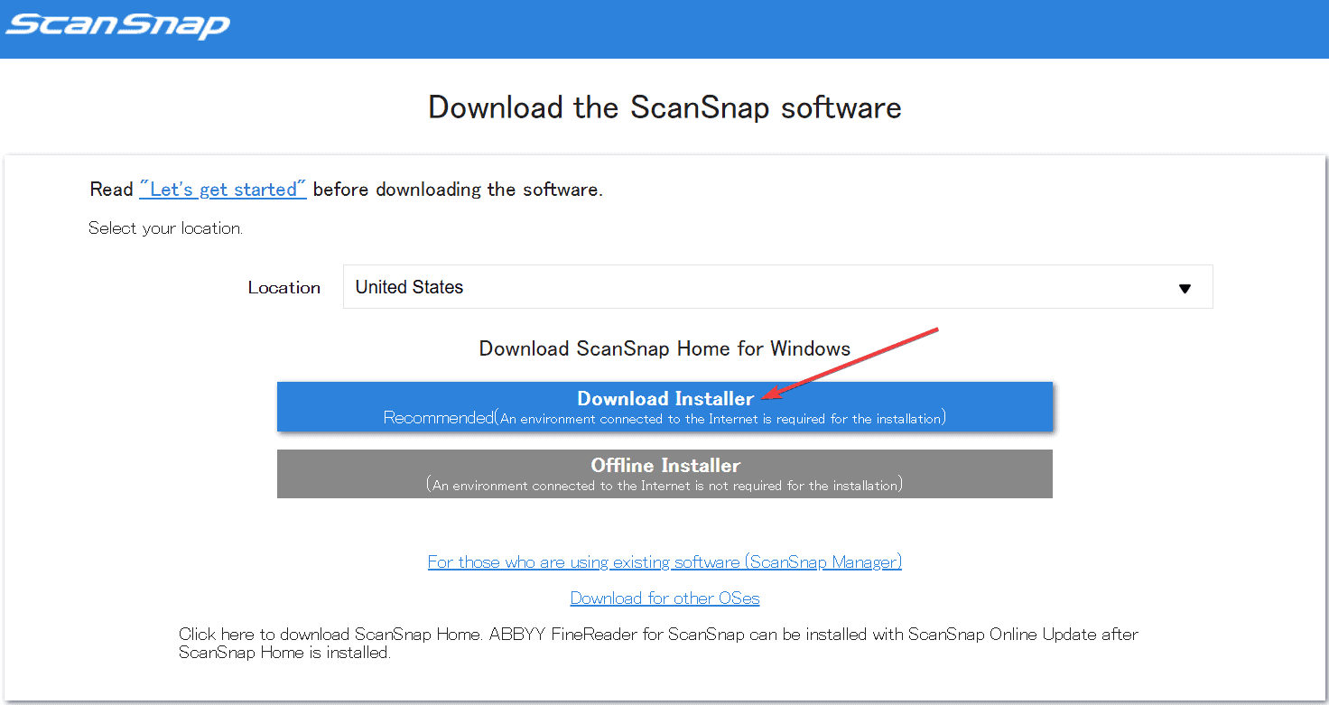 - Скачайте ScanSnap Home с официального сайта и установите.