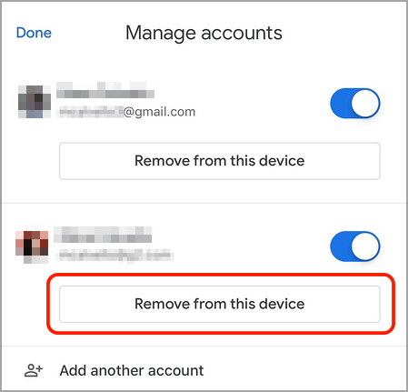 Alt: Опция удаления аккаунта с устройства в настройках приложения Gmail