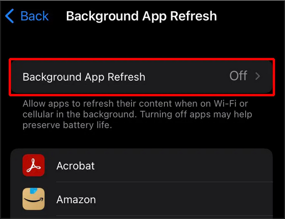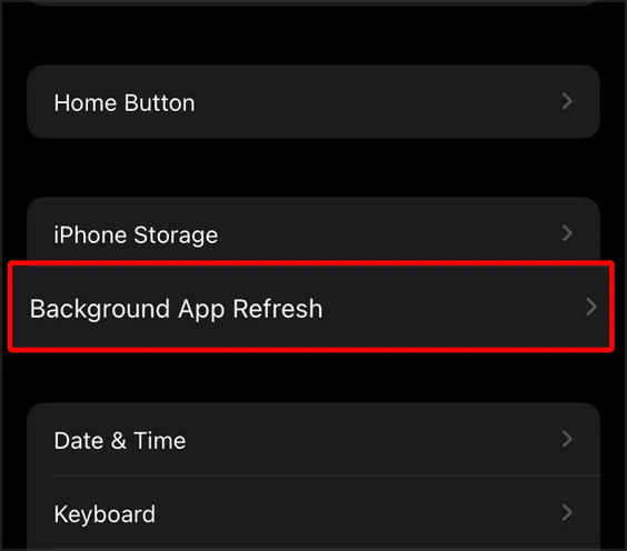 Alt: Пункт Обновление контента в фоне в настройках iOS