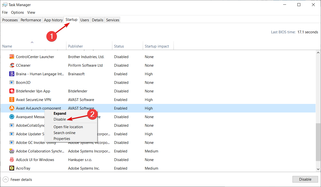 - На вкладке Автозагрузка отключите антивирусные утилиты для проверки.