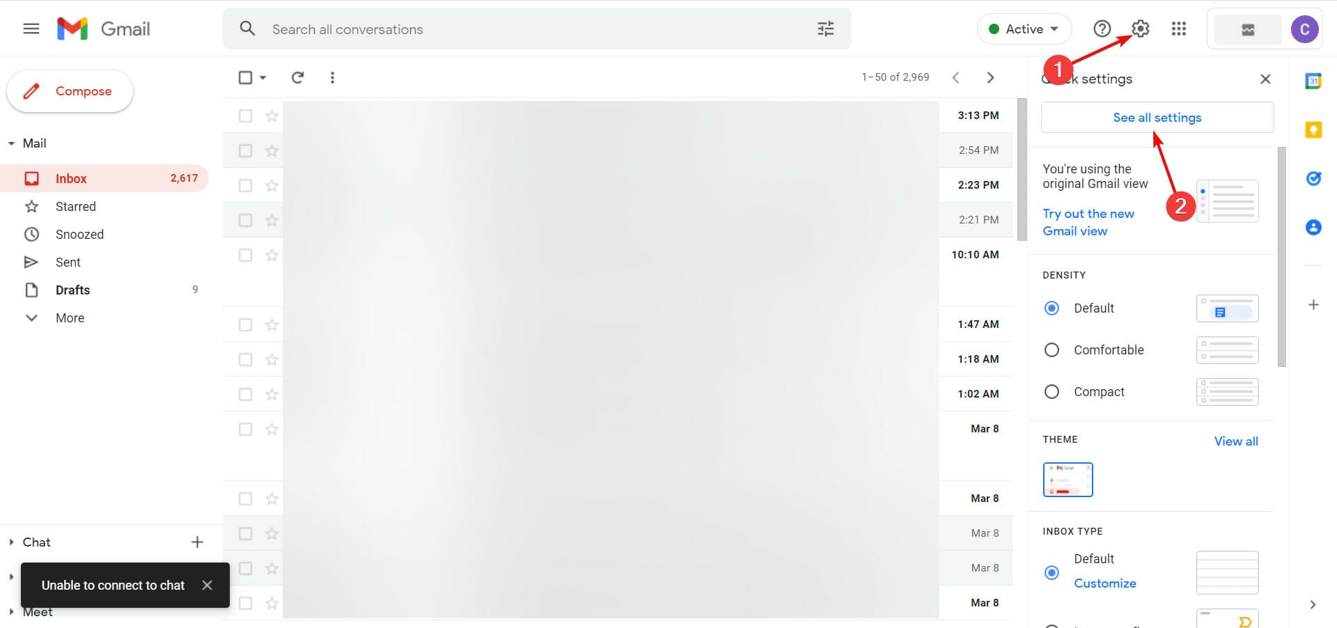 Alt: Меню настроек Gmail с кнопкой Просмотреть все настройки