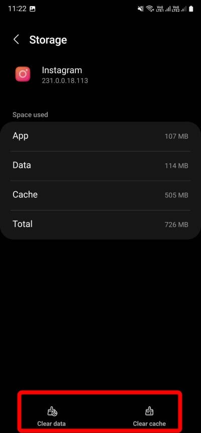 - Очистите кэш приложения Instagram.
