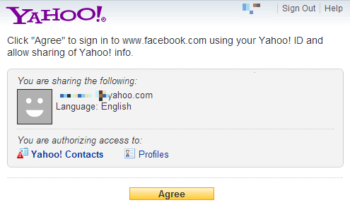 - Подтвердите обмен контактными данными, дав Yahoo! доступ к контактам Facebook.