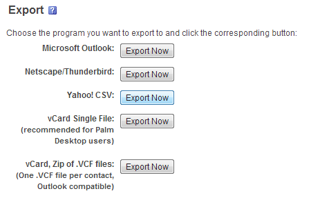 Как уже оговаривалось выше, контакты, импортированные из Facebook, в этот CSV включены не будут из-за ограничений Yahoo!.