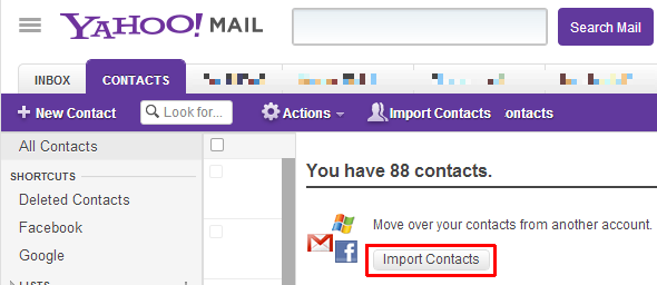 - В Yahoo! Mail откройте Контакты и импортируйте их из Facebook.