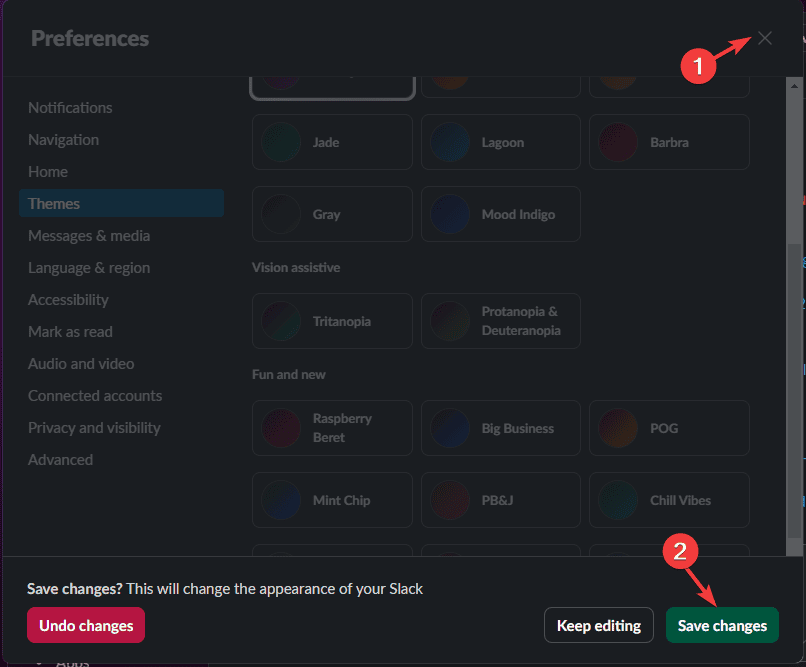 - В блоке Slack themes выберите понравившуюся предустановку.