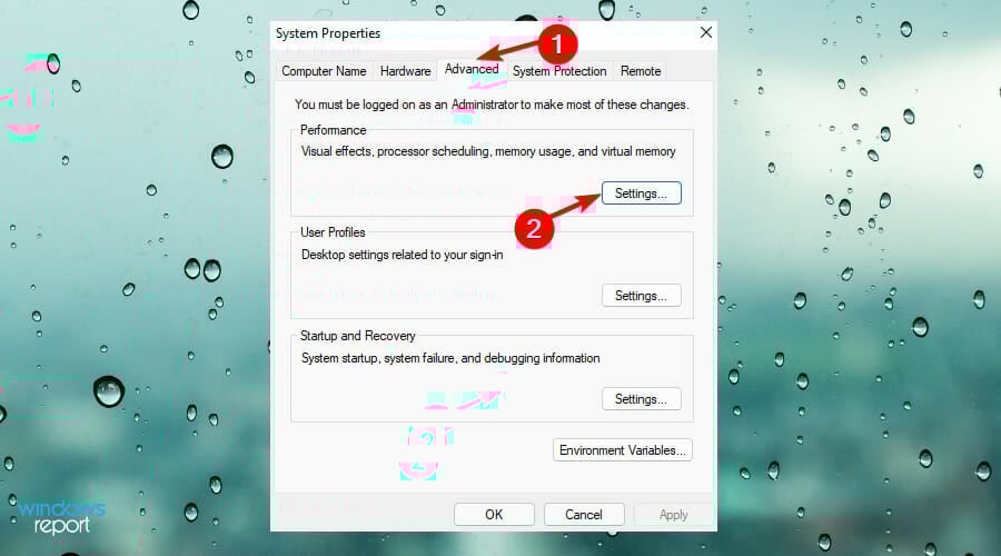 - На вкладке Дополнительно в разделе Производительность нажмите Параметры.