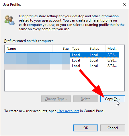 - Опция «Копировать в» недоступна: убедитесь, что вы не вошли в копируемый профиль и что есть второй администратор.