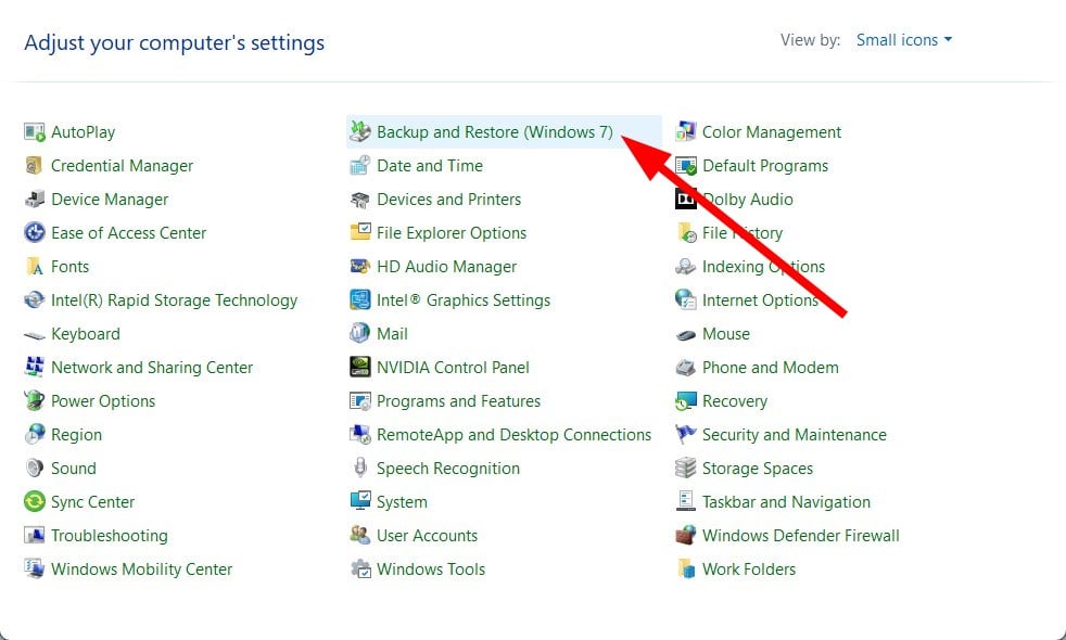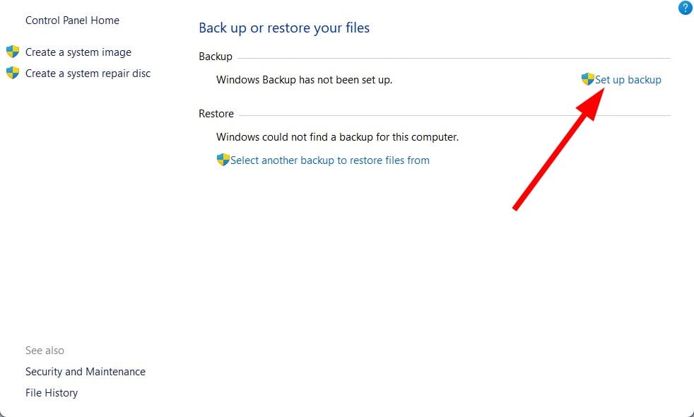 - Нажмите Резервное копирование и восстановление (Windows 7).