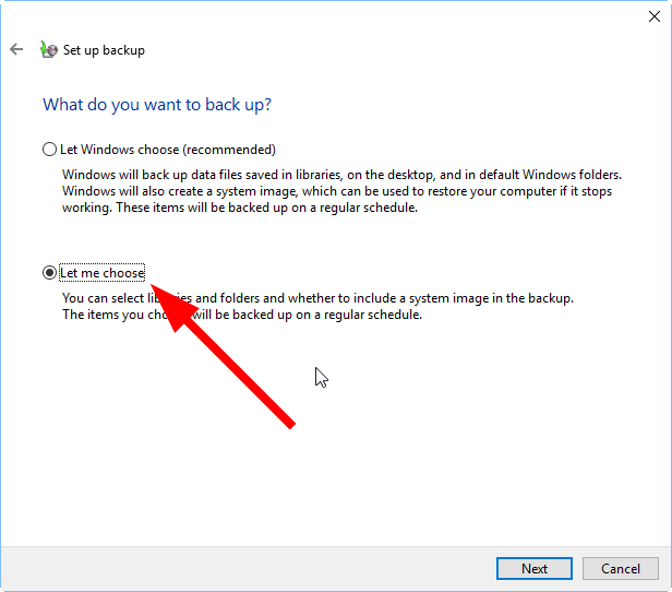 Краткое описание изображения: выбор типа резервной копии — «Разрешить мне выбрать».