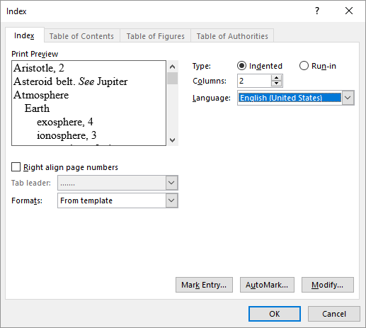 - Сформировать пример оглавления и индекс по вашим данным.