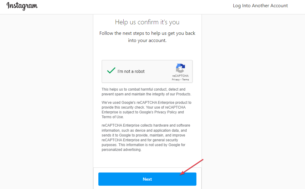 - Запросите ссылку для входа у Instagram.