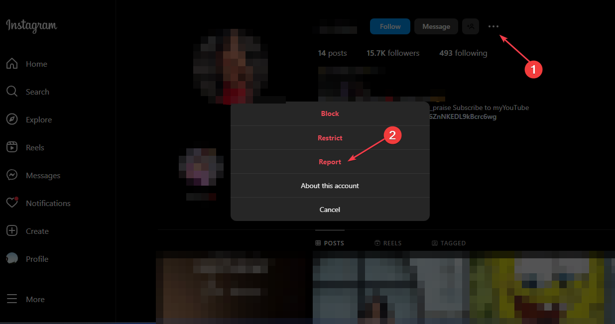 Примечание: массовые жалобы эффективны, когда профиль явно нарушает правила и содержит контент, используемый злоумышленниками.