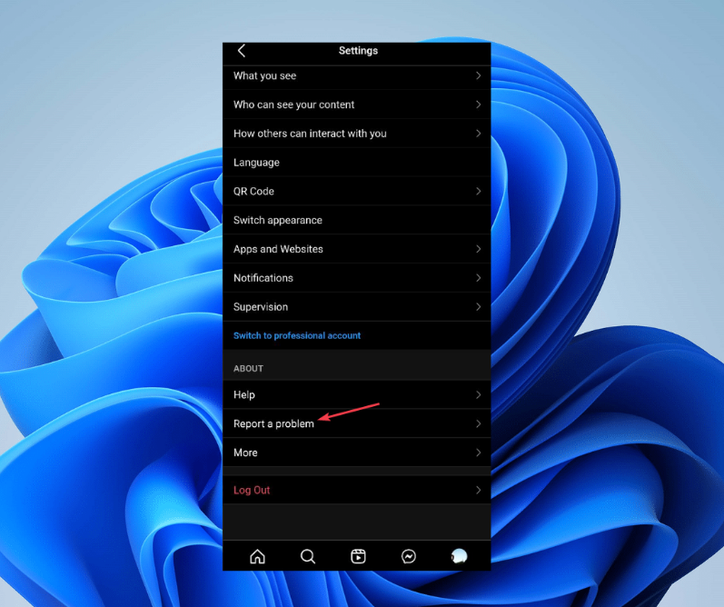 - Выберите “Сообщить о проблеме”.