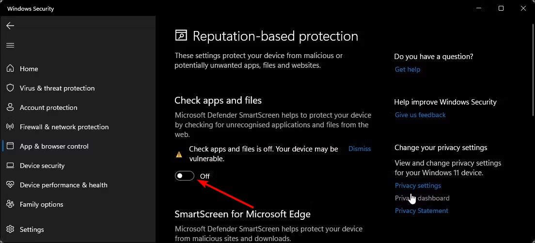 - Включите SmartScreen обратно тем же способом, через который вы отключали.