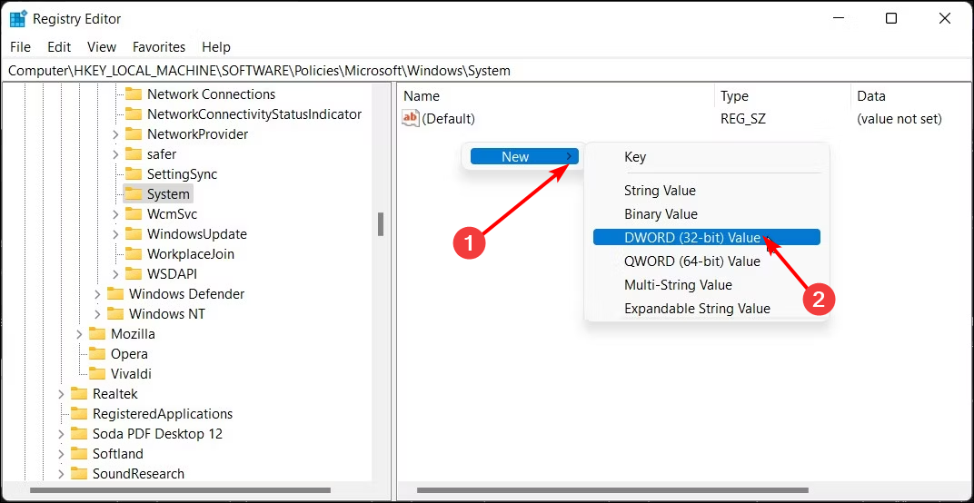 HKEY_LOCAL_MACHINE\SOFTWARE\Policies\Microsoft\Windows\System