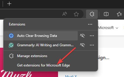 - Нажмите «Получить расширения для Microsoft Edge» (Get for Microsoft Edge extensions).