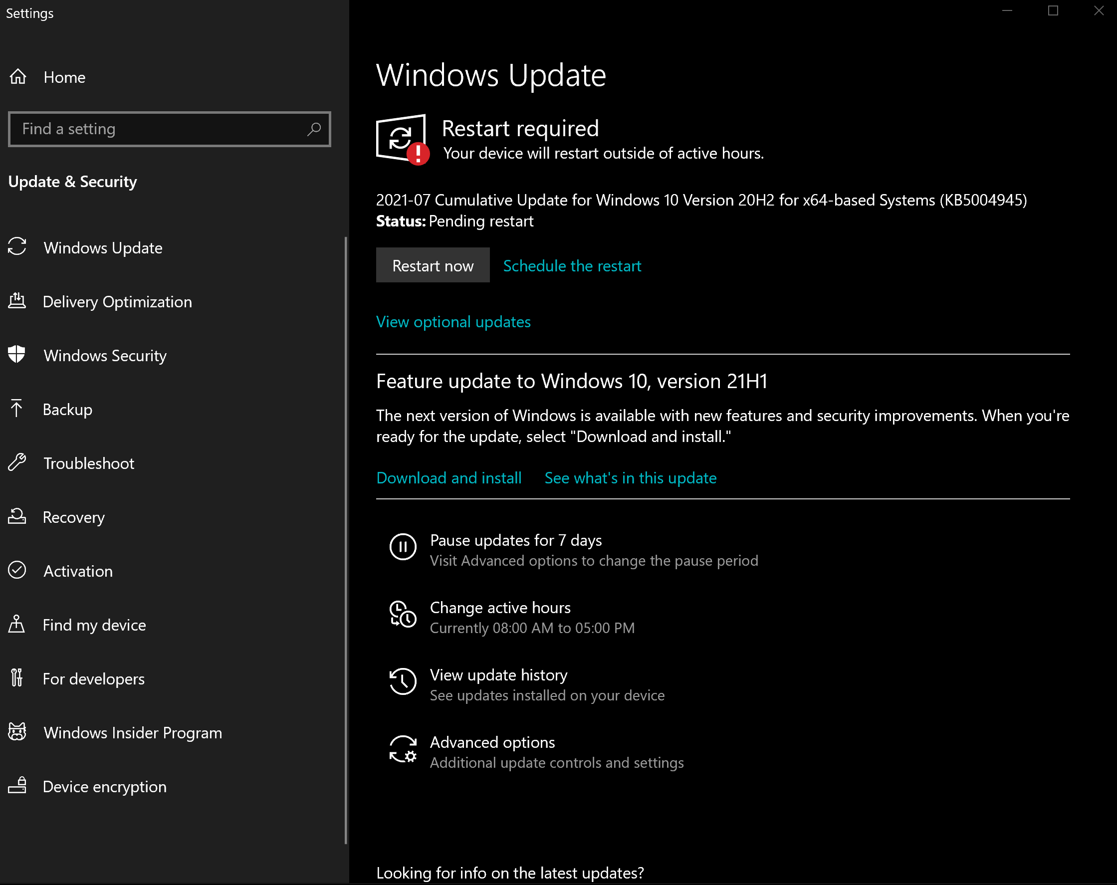 - Нажмите «Установить сейчас», чтобы обновиться до версии 20H2 и получить KB5004945.