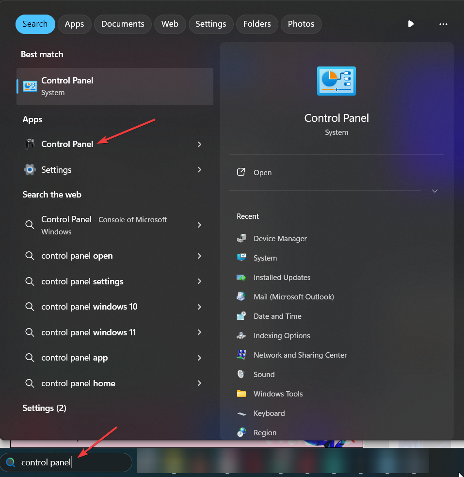Откройте меню Пуск и введите «Панель управления», затем откройте классическую Панель управления Windows.