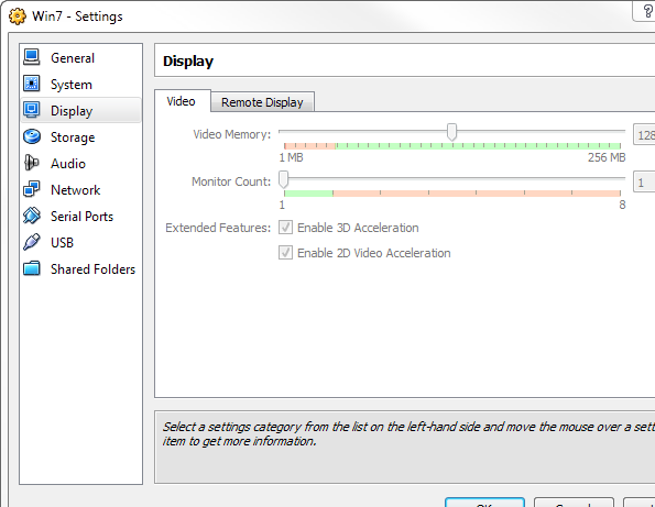 - Достаточный объём видеопамяти в настройках VM (рекомендовано минимум 128 МБ).