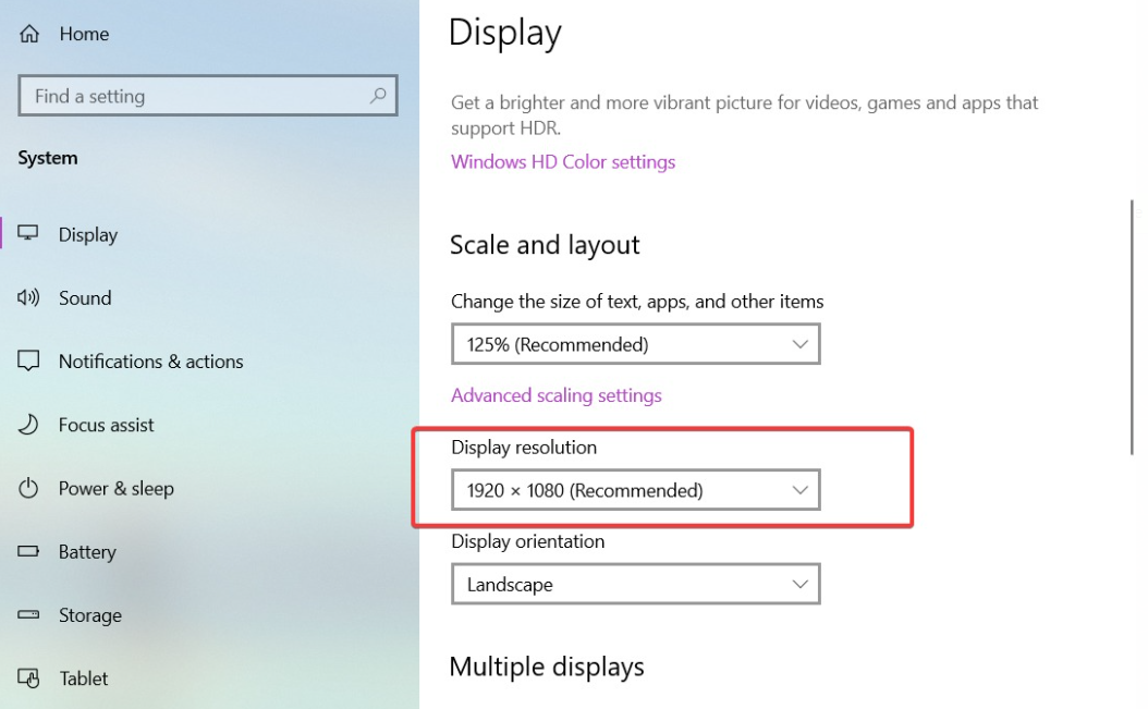 - Подключите HDMI и выберите рекомендуемое разрешение в Windows.