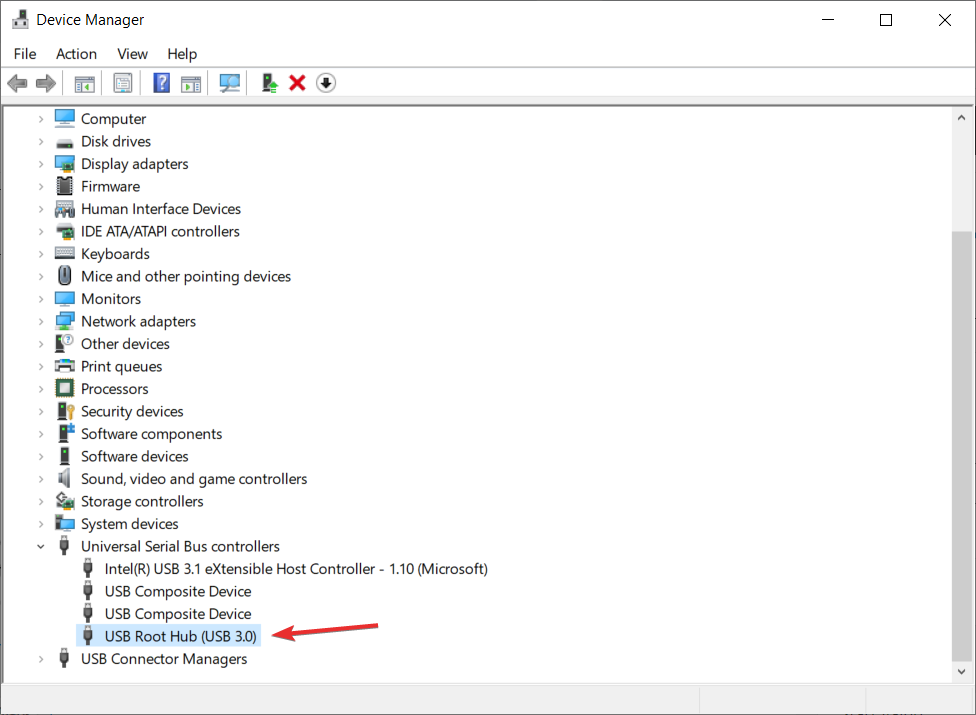 - Дважды кликните по устройству USB Root Hub или похожему USB-хабу.